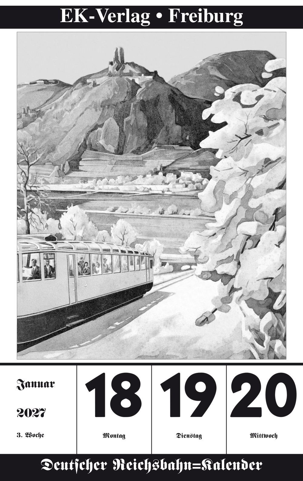 Auch im Jahr 2027 lädt der Kalender erneut zu einer faszinierenden Reise durch die deutschen Lande der dreißiger Jahre ein: von Baden bis Pommern, von malerischen Bahnhöfen bis zu eindrucksvollen Zugaufnahmen aus längst vergangenen Tagen.
